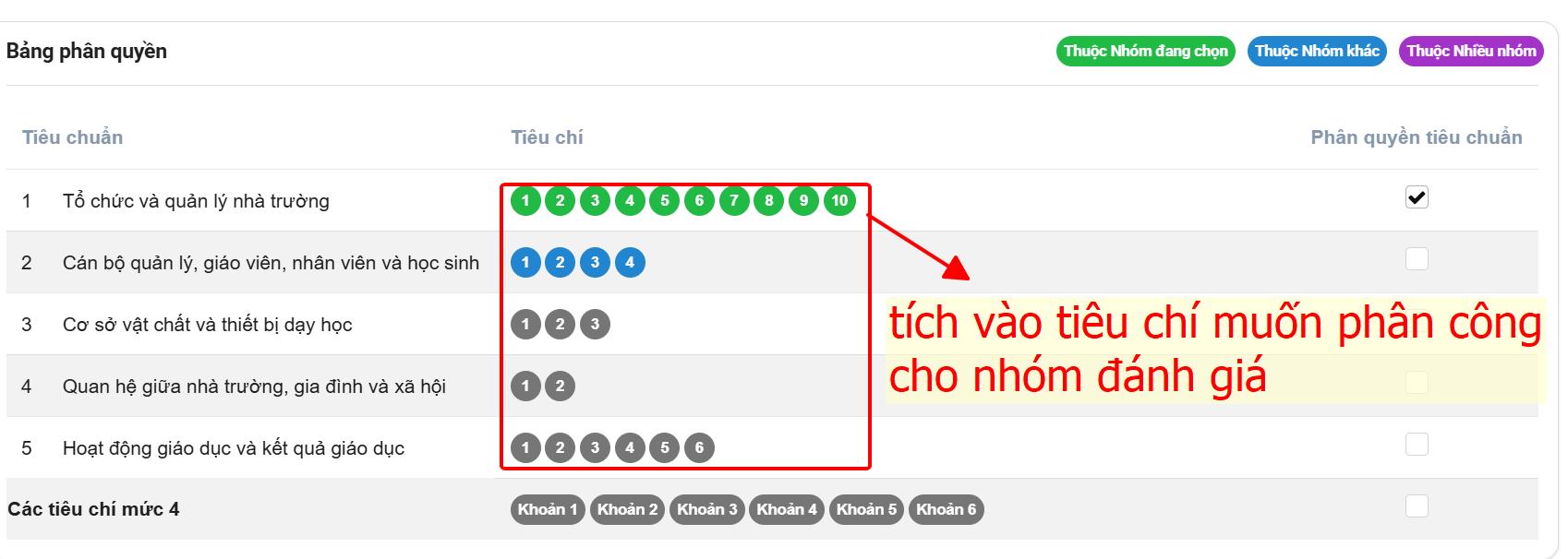 • Chỉ tài khoản quản trị mới có quyền tạo nhóm và phân công tiêu chí