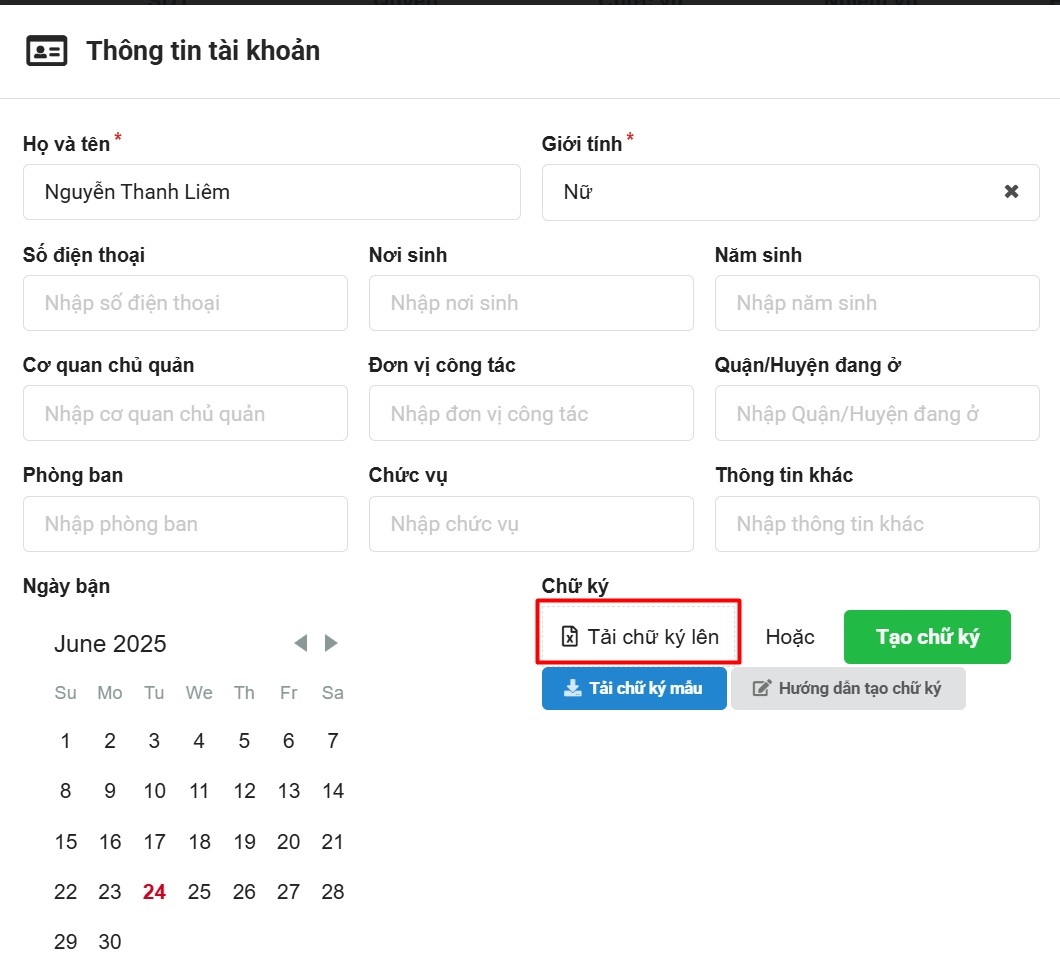 Cách 2: Tải lên file ảnh chữ ký có sẵn từ máy tính