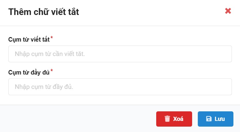 - Từ viết tắt sau khi được khai báo sẽ được phần mềm tự động tổng hợp khi xuất báo cáo tự đánh giá.