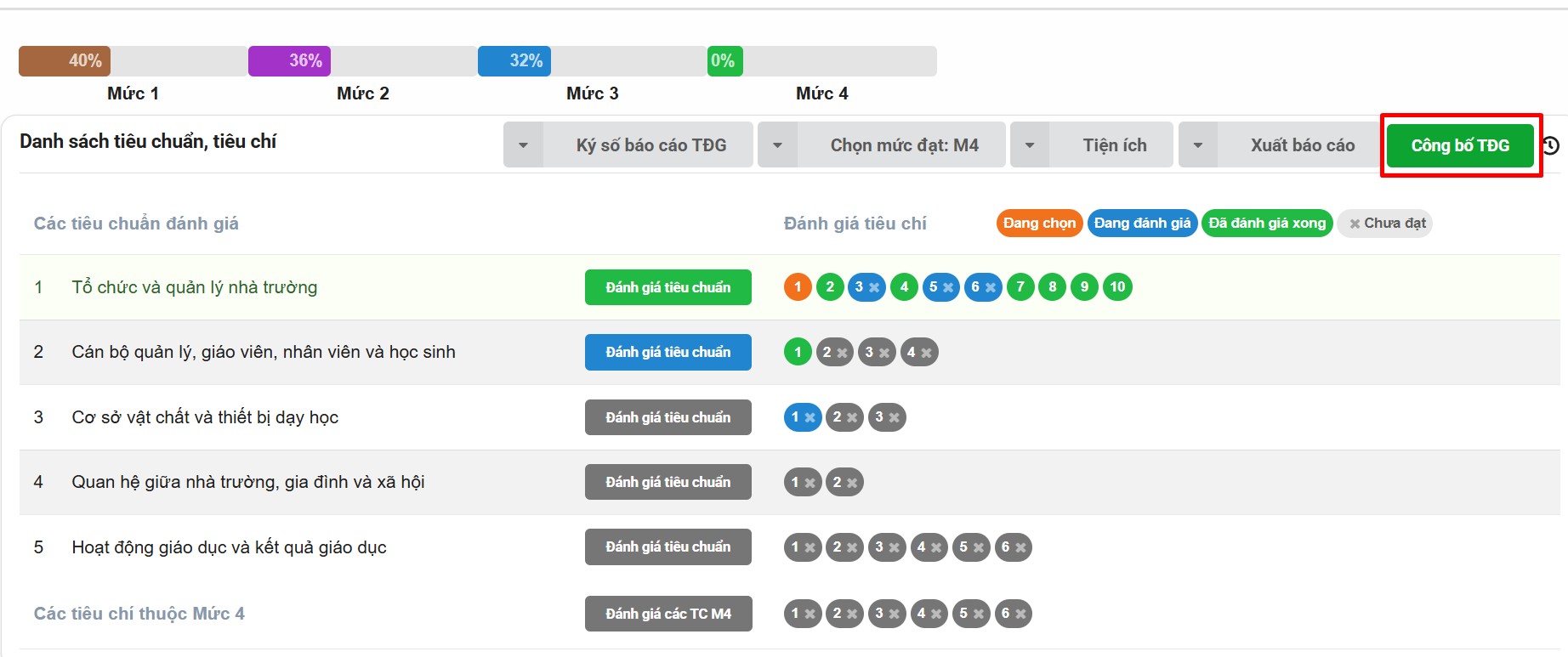 • Hoàn thành đánh giá tất cả tiêu chí, chỉ báo, mức đánh giá;